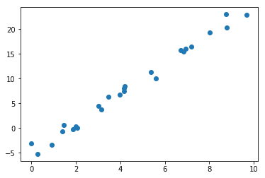 y = 3 * x - 5 + rng.randn(25)