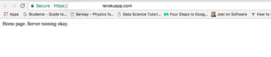 https://<ten-app-cua-ban>.herokuapp.com/bằng trình duyệt. Nếu bạn nhìn thấy dòng "Home page. Server running okay." thì mọi thứ đã hoạt động tốt.