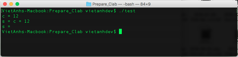 Rõ ràng xâu s đã không được nhập vào. Vấn đề này xảy ra do khi nhập c bằng scanf() thì kí tự \n vẫn còn lưu trong bộ đệm bàn phím. Khi lệnh nhập s (fgets) chạy, nó gặp kí tự \n trong bộ đệm do vậy trả luôn về một xâu chỉ chứa \n.
