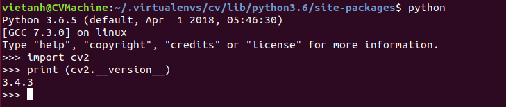 Kết quả sẽ hiện ra phiên bản OpenCV bạn vừa cài (3.4.3) nếu việc cài đặt thành công.