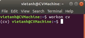 Sử dụng môi trường ảo vừa tạo bằng lệnh dưới. Hãy nhớ “workon cv” mỗi lúc bạn cần sử dụng môi trường chứa OpenCV này.