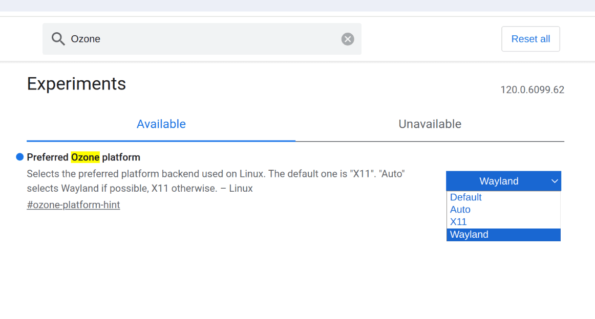 Waylandoption - Restart Chrome